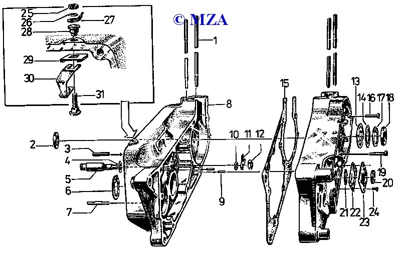 SET Normteile Motorgehäuse + Deckel kpl. - Innensechskant, 21-teilig - M500-M700