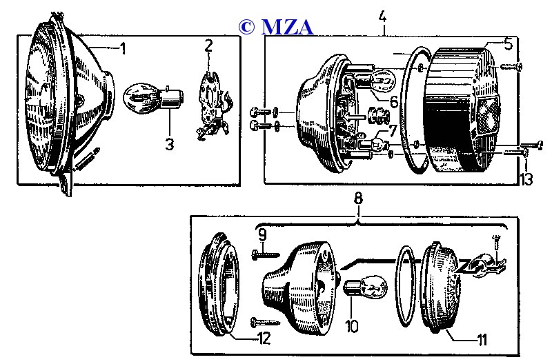 Grundplatte N-8305.2-100 (Nachbau/Replica) (12V 42/21W Bilux) SR50C,CE,SR80CE