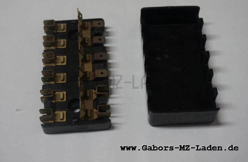 Fuse box 8811.15/1 6-way input 3x2 OrderNo.: 8811.15.1 Genuine spare Specially for Wartburg 353 / 1.3 + as well as general use in various vehicles 9,50 € (incl. VAT, plus shipping) in stock