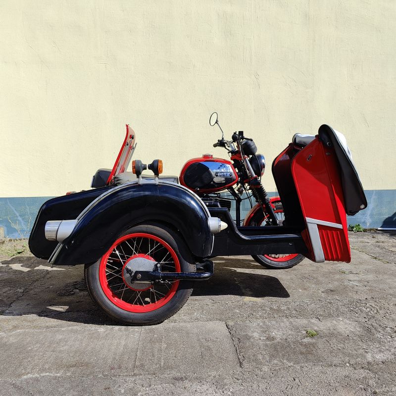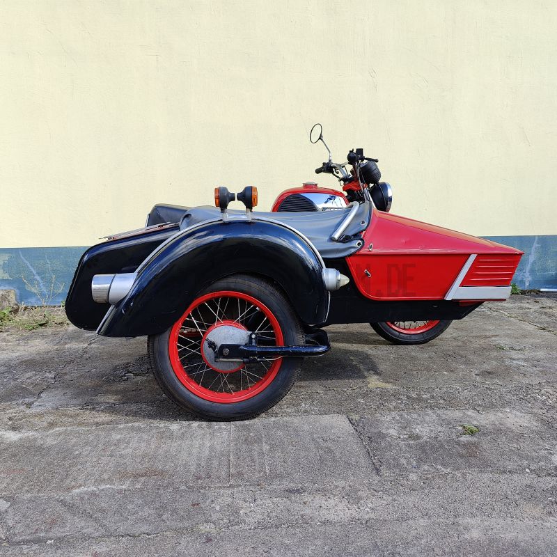 - Das Gespann wurde technisch aufgewertet und mit zuverlässigen Komponenten ausgestattet. Es verbindet den klassischen MZ-Charme mit modernerer Technik und hoher Alltagstauglichkeit.