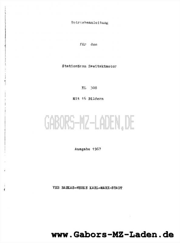 BARKAS Motor estacionario EL 308 n° del pedido: L260 manual de instrucciones de la edición de 1967, copia alemán 4,50 € (Incl. IVA, más gastos de envío) Disponible